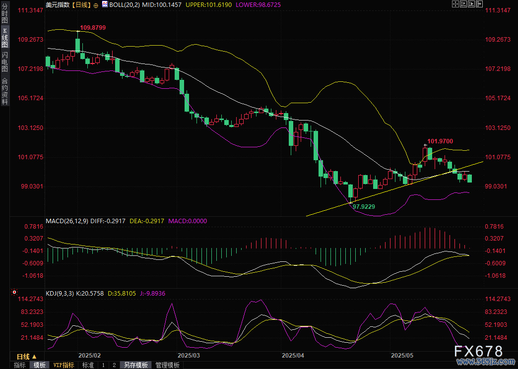 汇通财经APP讯——周五(5月23日)亚欧时段,美元指数再度震荡走弱,目前下跌0.53%至99.42,回吐了周四的全部涨幅,周线跌幅约1.54%,将出现五周以来的首次周线下跌。这场抛售潮中,欧元成为赢家,兑美元汇率单日飙升0.55%至1.1340关口,周涨幅有望突破1.6%。更引人注目的是,曾经被视为避险天堂的日元也加入围剿美元的行列,这反映出市场对美国财政健康状况的空前担忧。